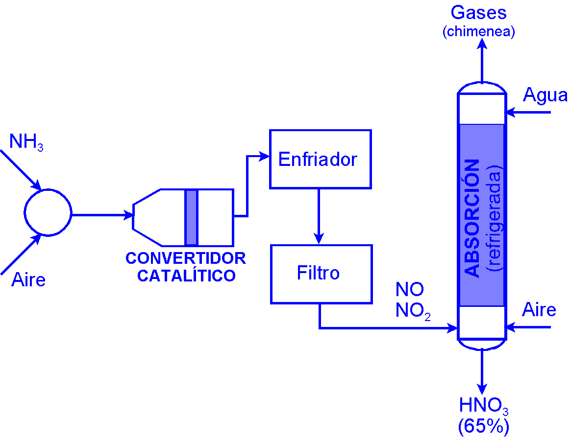 | Obtención del ácido nítrico: Oxidación del amoníaco con aire a