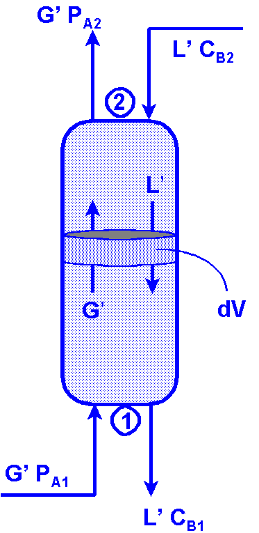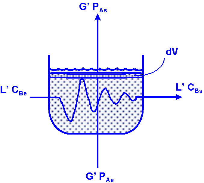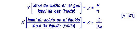 Al tratarse de disoluciones diluidas en ambas fases, puede usarse la nomenclatura utilizada en absorción gas-liquido: