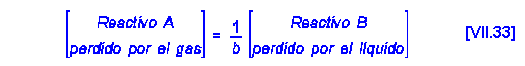 y considerando la teoría de la película, la densidad de flujo máxima (reacción instantánea) será: Relacionando las dos densidades de flujo [VII.16] y [VII.10]:
