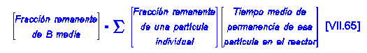 Como cada partícula permanece en el reactor durante un tiempo diferente puede calcularse la conversión media como: