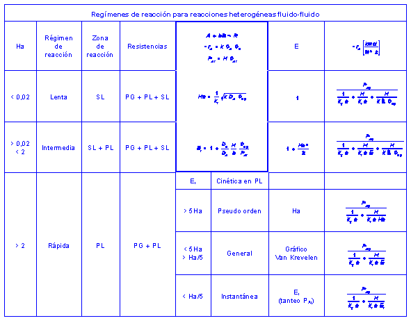 la cinética de la reacción (rápida, Ha >2) en la película líquida: