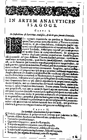 - Su obra Isagoge in artem analyticam ("Introducción al arte analítico") constituye el primer libro conocido de Álgebra y en ella utiliza por primera vez letras mayúsculas para representar cantidades en una ecuación (igualdad entre dos expresiones, una de las cuales contiene, al menos, una incógnita).