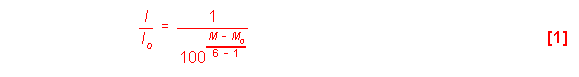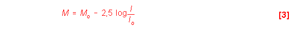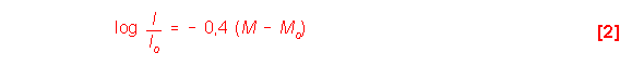 Posteriormente Pogson (1850) propuso definir con mayor exactitud la escala de las magnitudes, ya que al desarrollarse los instrumento ópticos, se podían comparar de forma muy exacta los brillos de las distintas estrellas. De esta forma, al comprobarse que la estrella media de 1ª magnitud tenía un brillo 100 veces mayor que el de la estrella media de 6ª magnitud, se pudo relacionar las intensidades del brillo I e Io de dos estrellas con sus correspondientes magnitudes, M y Mo: