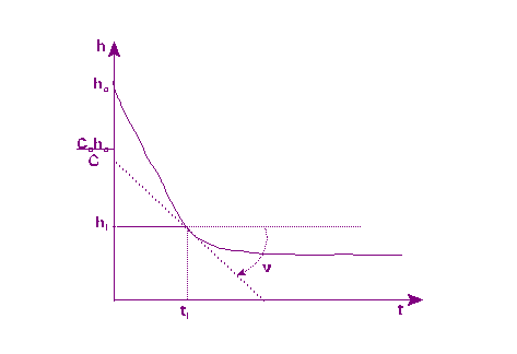 es decir, si se miden las alturas desde la base de la probeta, la diferencia entre la altura inicial, ho (a la que le corresponde la concentración inicial, Co), y el espacio recorrido por los sólidos, que sedimentan a la velocidad v. Obsérvese en este punto que para continuar con el razonamiento, se aceptará la hipótesis propuesta por Kynch (1952), que considera que la velocidad de sedimentación, v, solamente depende de la concentración de la suspensión, C.
