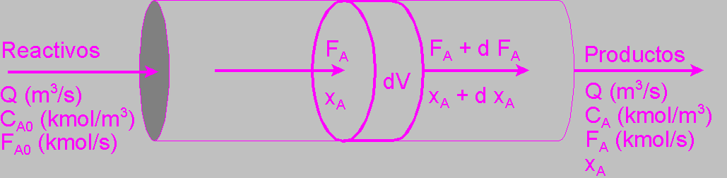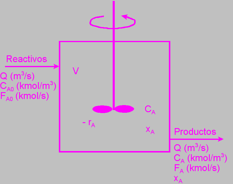 A continuación se presentan de forma esquemática para cada uno de dichos modelos, sus correspondientes balances de materia, esquemas de funcionamiento y ecuaciones de diseño, en la que -rA es la velocidad de reacción y xA es la conversión, definida como: