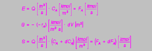 Para obtener la ecuación de diseño del reactor químico, es decir, la relación entre la velocidad de producción y la composición de los productos y la velocidad de la reacción química se utilizan los balances de materia, que se aplican, cuando se opera en una sola fase (reacciones homogéneas) a cada uno de los tres tipos de reactores básicos que se utilizan como modelos: discontinuo, tipo tanque agitado y tubular.