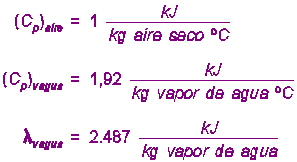 Normalmente se toman como estados de referencia para el cálculo de las entalpías el aire y el agua líquida a 0ºC y 1 atm, por lo que, teniendo en cuenta el cambio de fase del agua (cuyo calor latente se considera también a la temperatura de referencia), se tendrá: